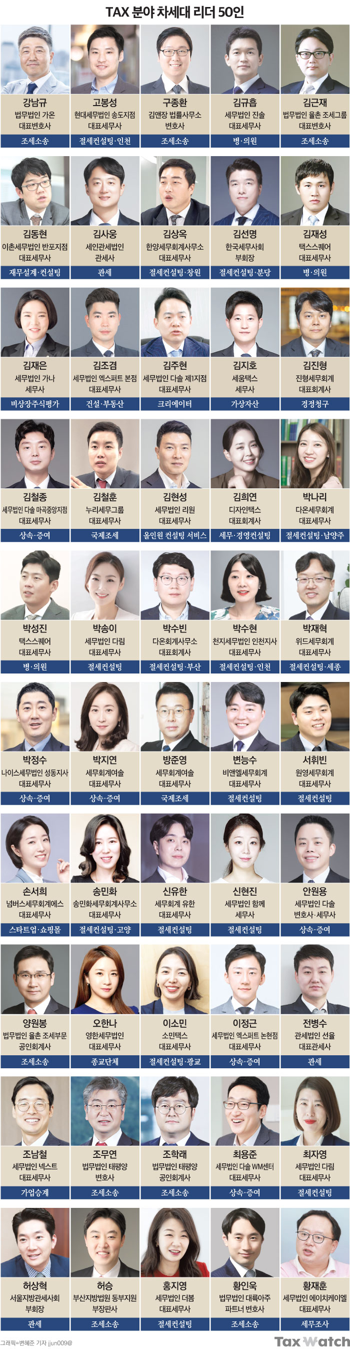 이를 바탕으로 택스워치는 'TAX 분야 차세대 리더 50인'을 발표합니다.