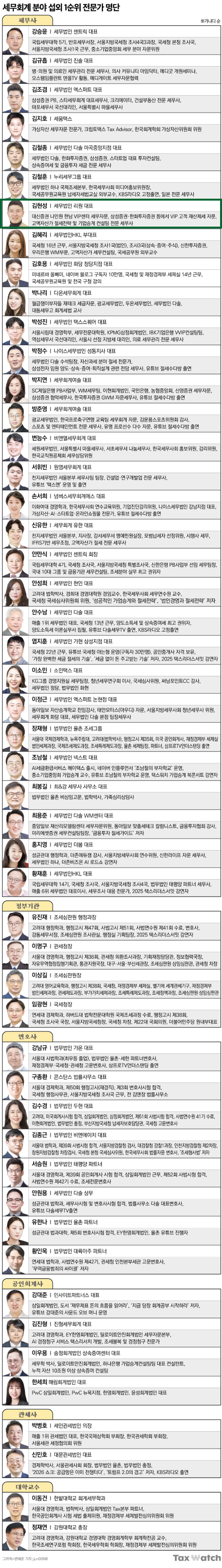 2026년에 자주 등장하게 될 세무·회계 분야 전문가 50명의 명단은 다음과 같습니다.